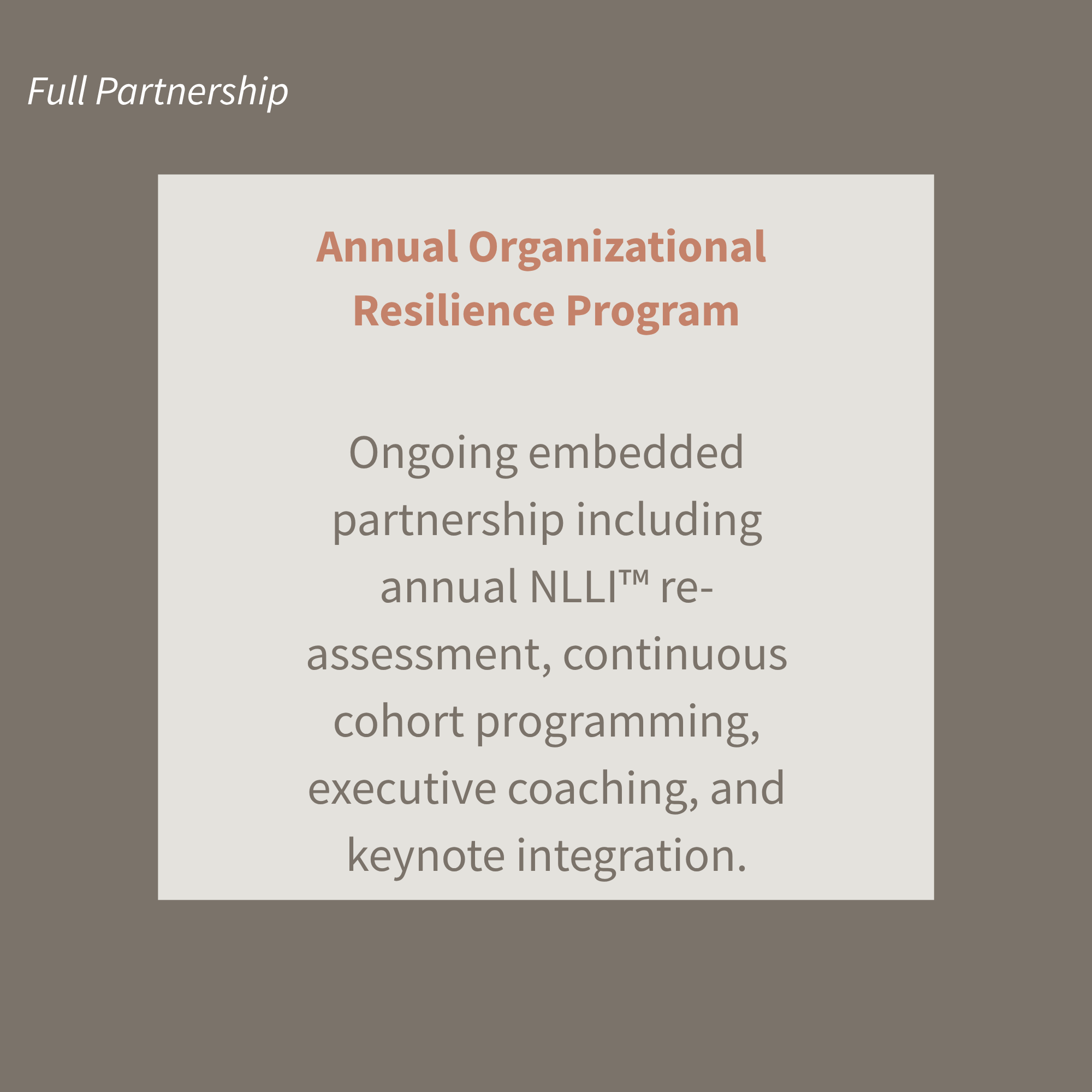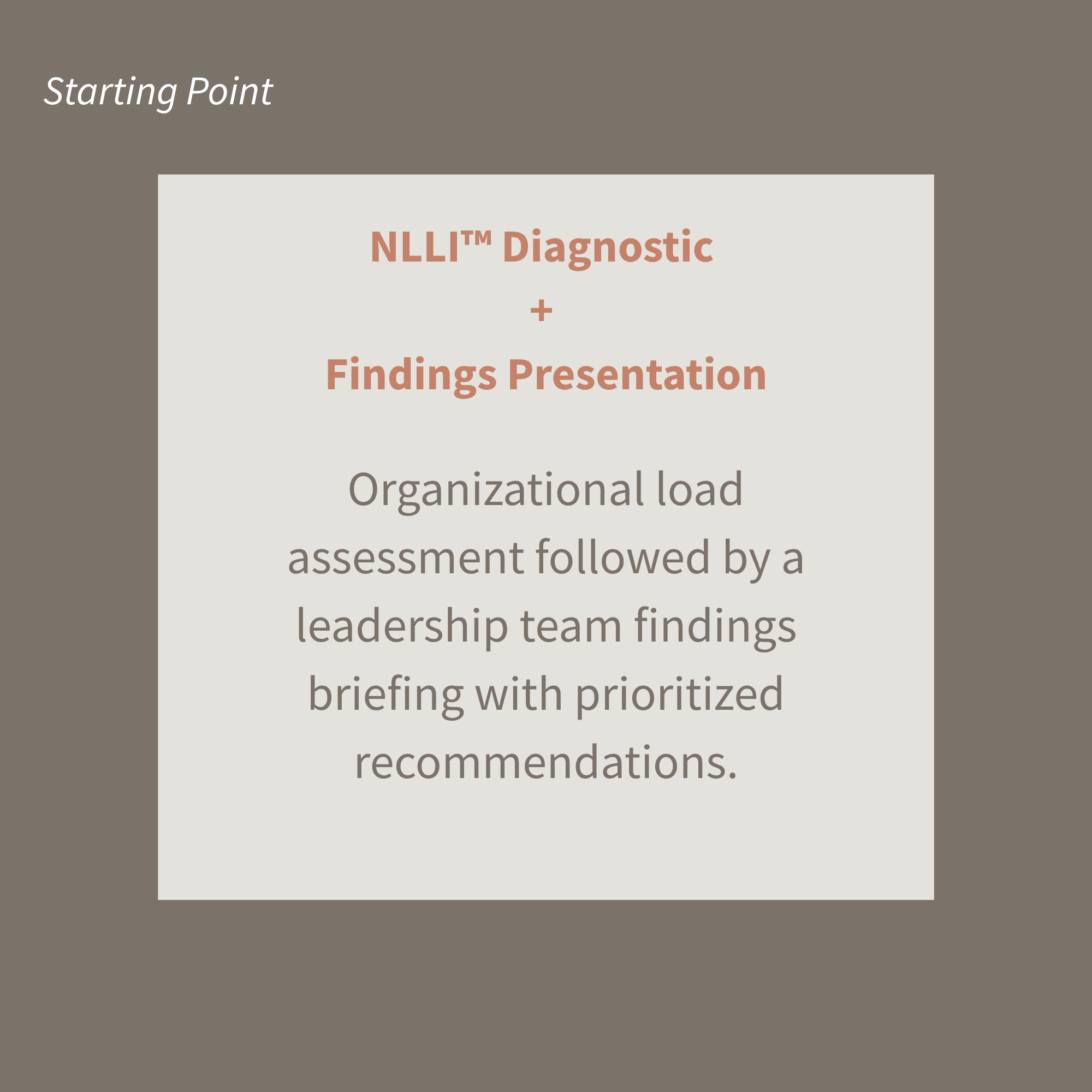 The NLLI™ Corporate Diagnostic changes that. It measures load before designing intervention — so organizations stop investing in solutions that don't match the problem.