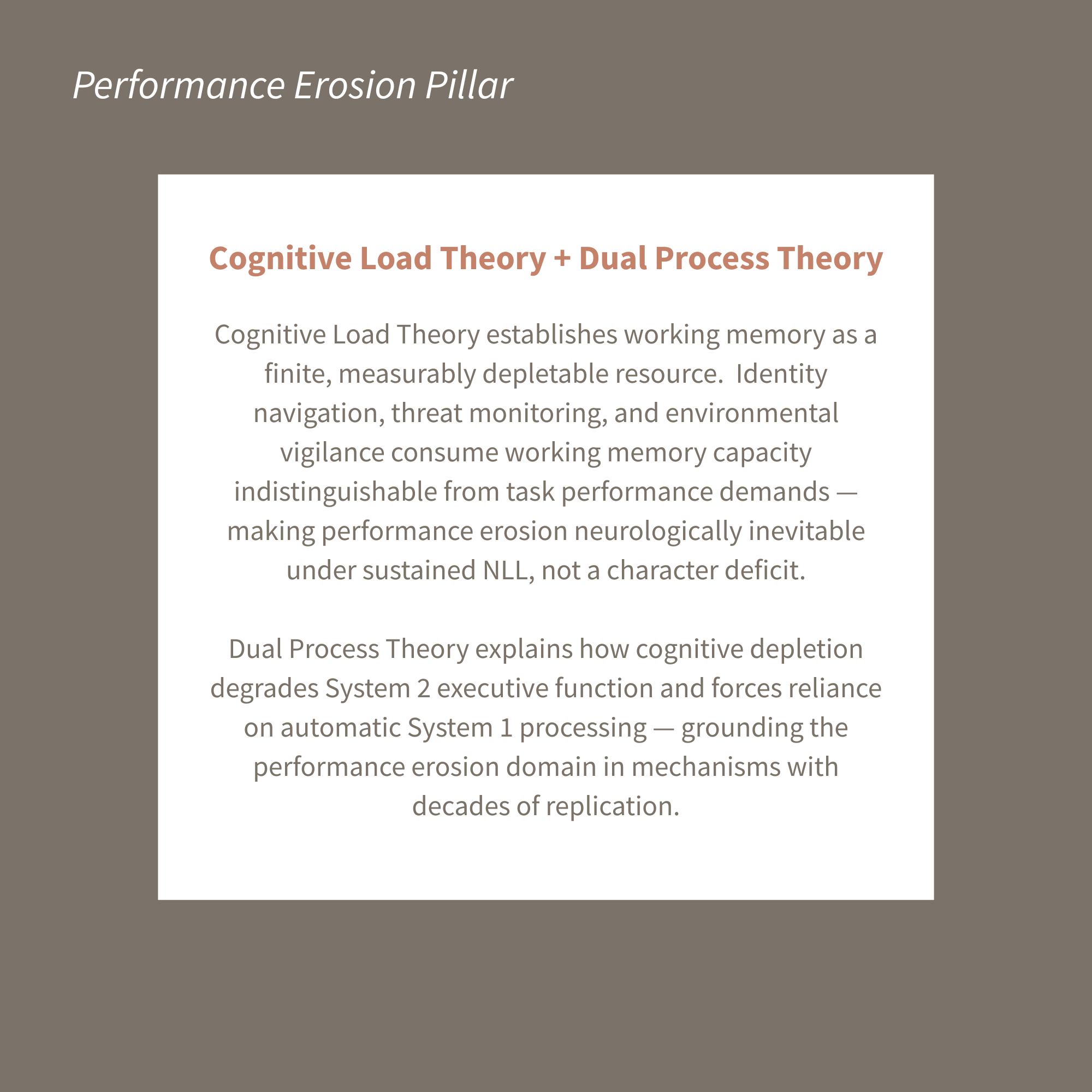 Performance Erosion Pillar — Cognitive Load Theory (Sweller) + Dual Process Theory
