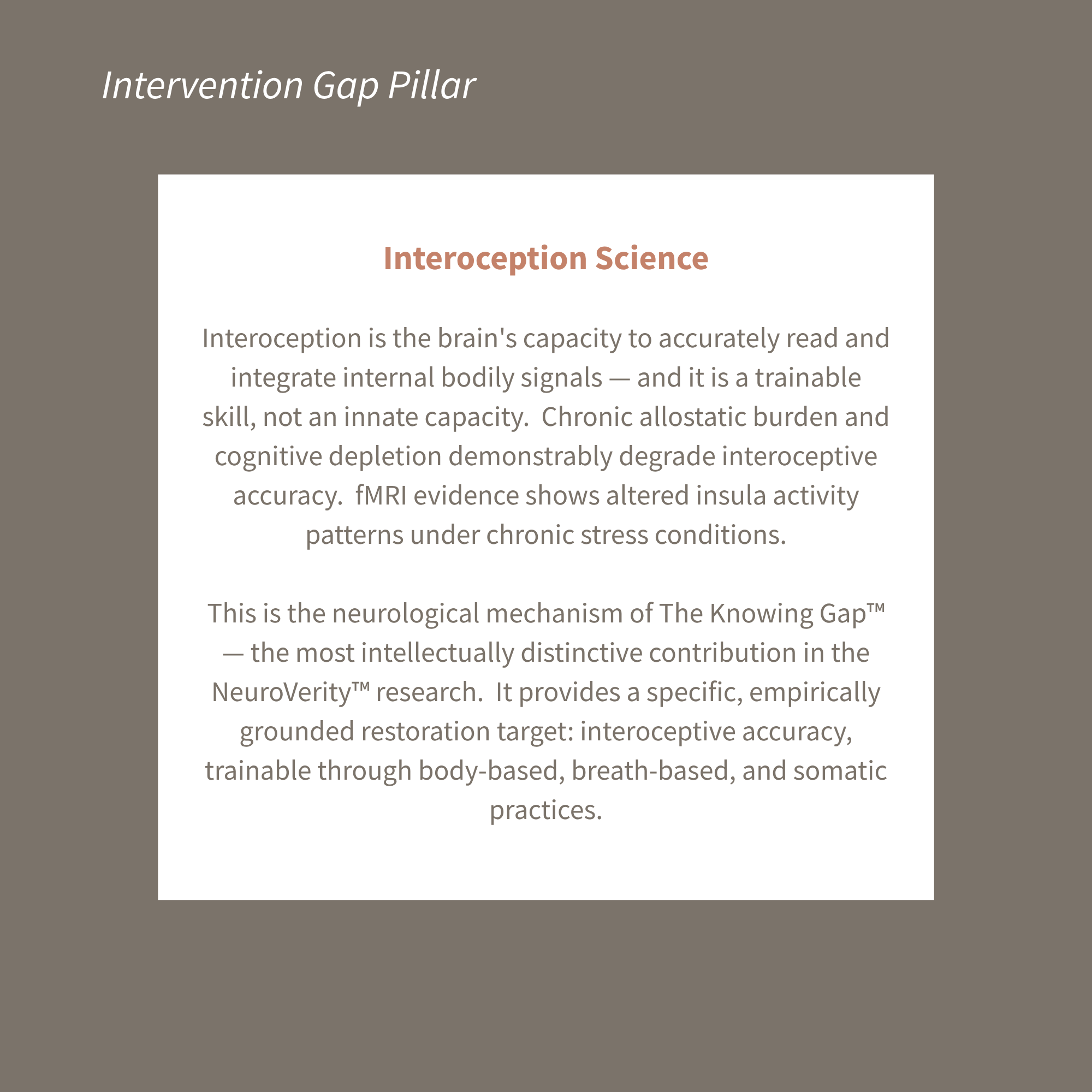 Intervention Gap Pillar — Interoception Science (Seth, Craig, Garfinkel)