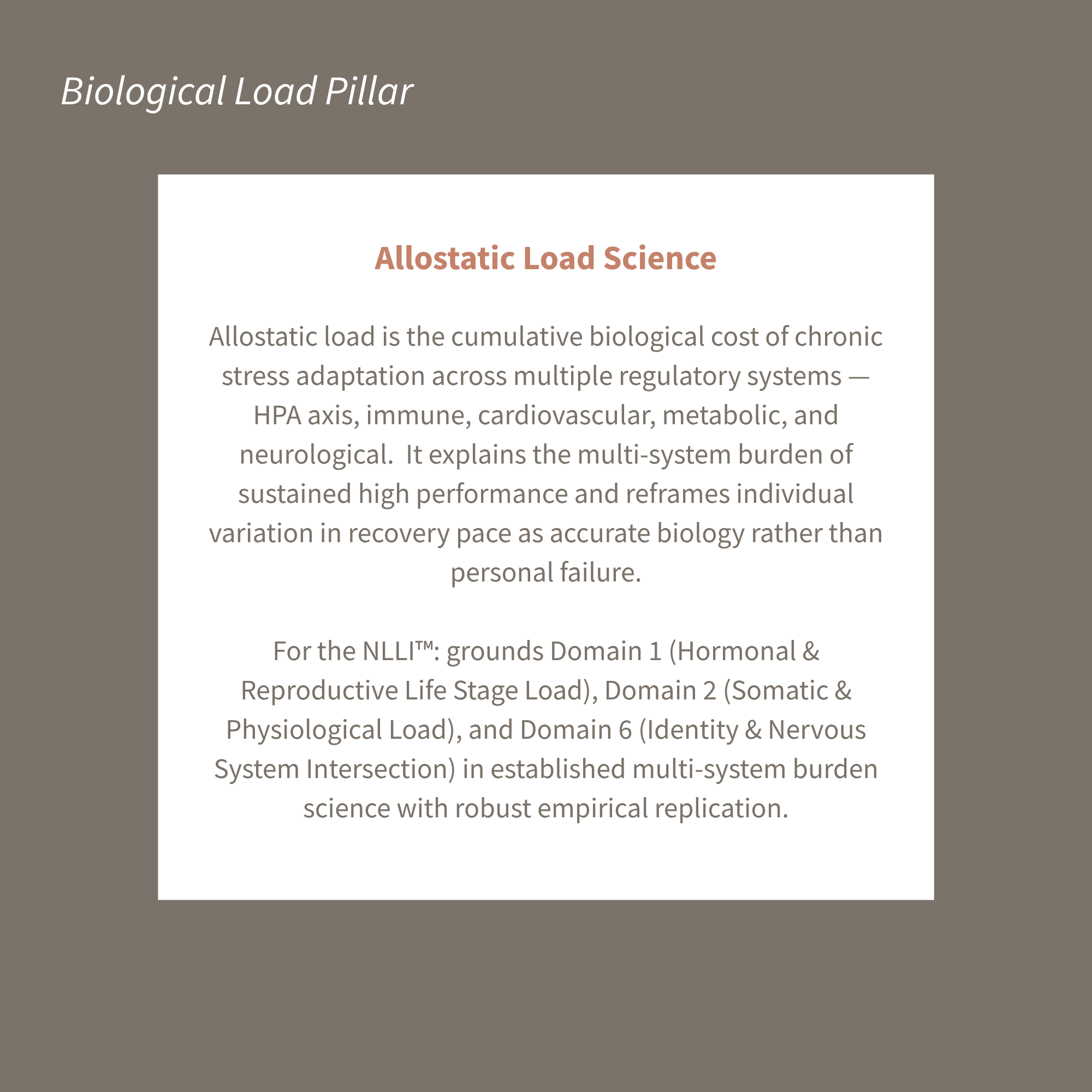 Biological Load Pillar — Allostatic Load Science (McEwen, Sterling)